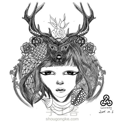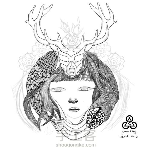 电脑手绘,对称图案,画一半就行,然后对称复制另一半,修饰衔接部分