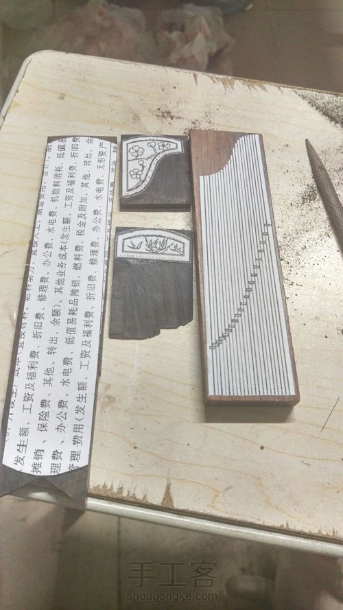 因为要做的是S形后岳山,用木头很容易顺着木纹断裂,所以用的是象牙果,后岳山可以顺着筝尾的S形在纸上描出来,可以是后岳山与接合处偏差不会太大。