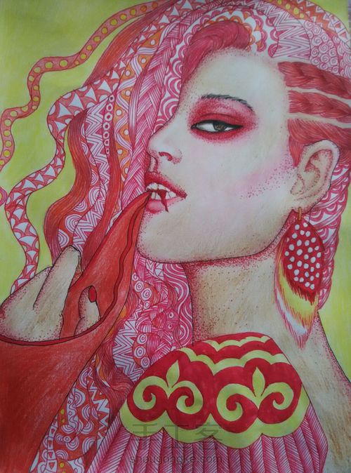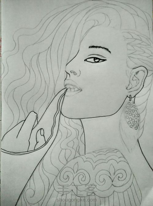 画唇部时笔漏墨了,只好把唇部改了一下