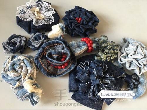用不穿的牛仔裤做一束手捧花