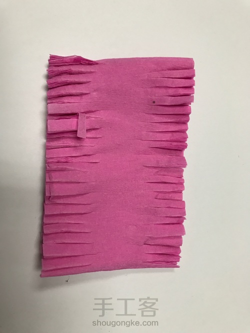 去一小卷皱纹纸,两边剪开口,中间留约2厘米不剪