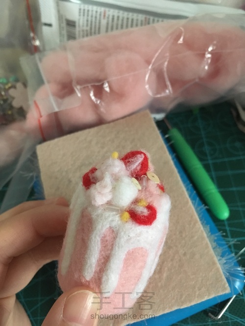 用红色 粉红 和白色戳草莓 过程如图