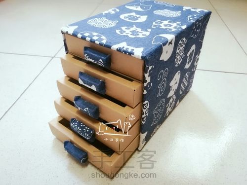 然后用4.8×5.5的花布将五个分别包起来,抽屉的把手就做好了
