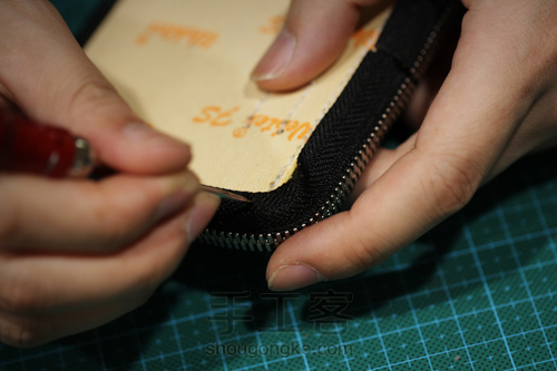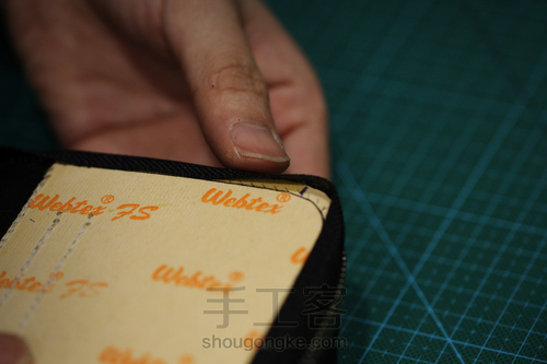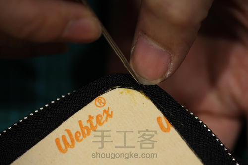 m.用锥子对内口袋底部上一层边油等干即可