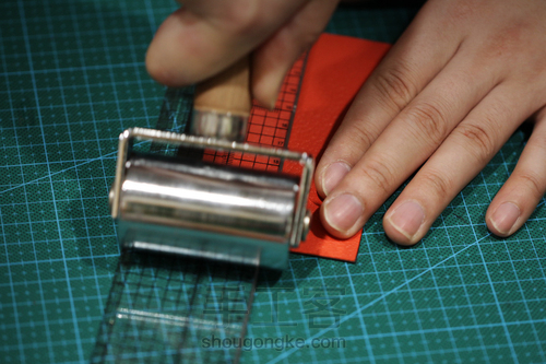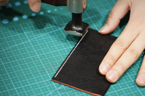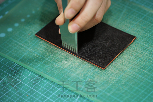 (1).用锥子把边油刮在皮料边缘