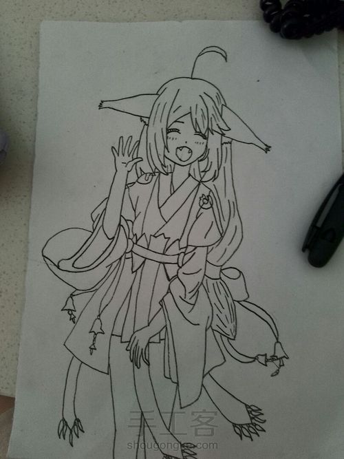在勾线,我随变用了一支笔勾。