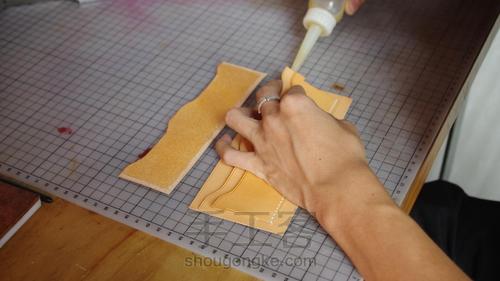 涂胶,把主皮和第二层卡位先贴合打孔并且缝线