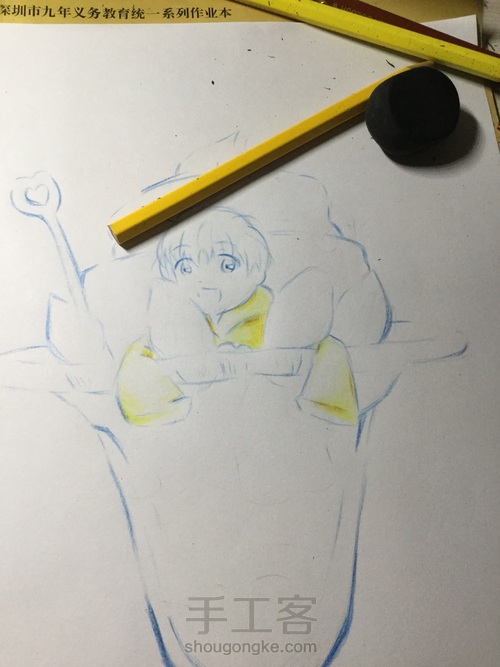 用蓝色的彩铅勾线!w