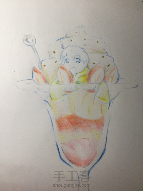 冰淇淋的第一层食物!铺色铺色!
