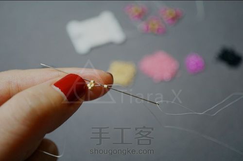 每一圈的最后一步,针都是穿过两颗珠子