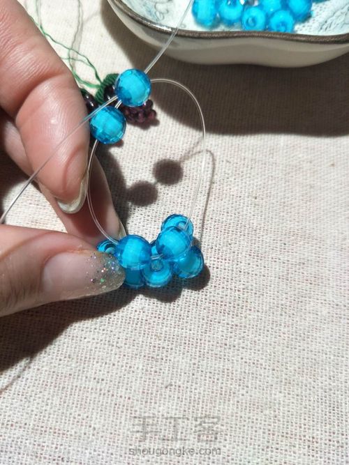 左过一,左串二,对穿拉紧,每次最后一颗都要对穿拉紧