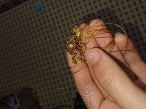 卷跟下边的心形外框的延长线用交换绕线的方法连接。
