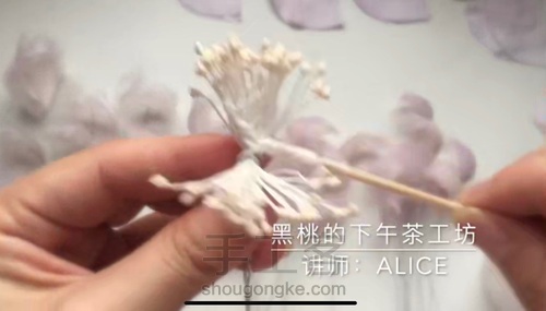 用铁丝和胶水把石膏花蕊粘起来,做成花蕊