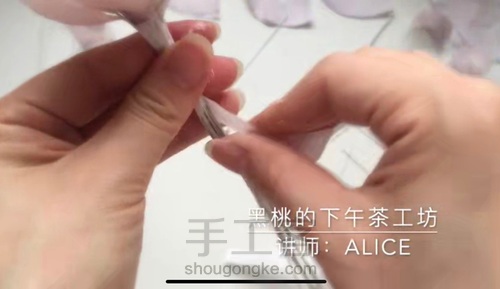 贴好花瓣后给铁丝缠花茎