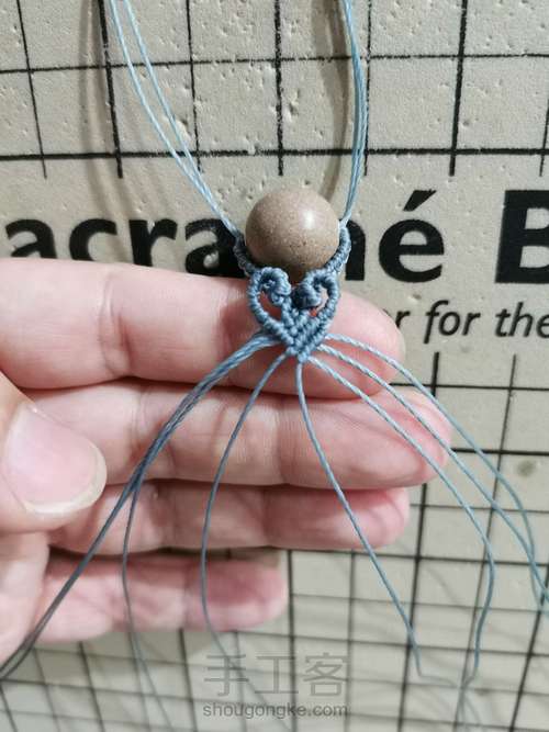 一边打7组雀头结,这个跟你用的珠子大小有关系。一般能包住珠子一半就差不多了。