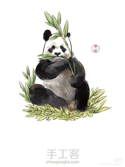 熊猫高高是一只保持童颜的崽崽,画得手法比七仔复杂一些,细节更多