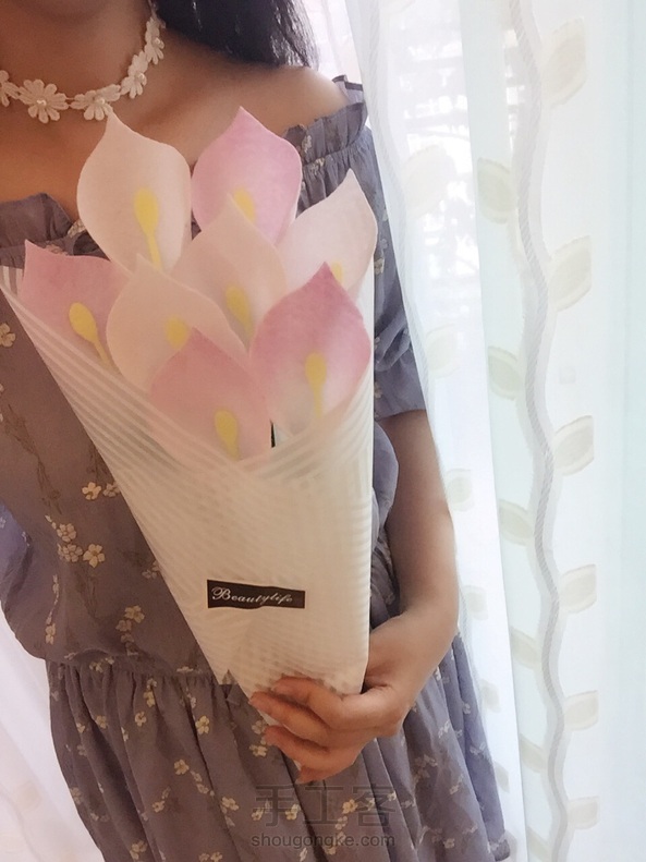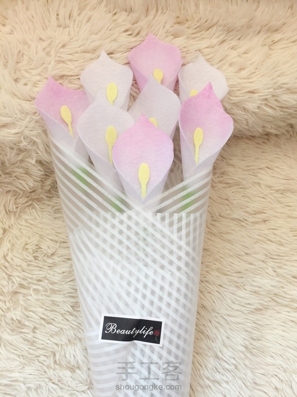 「不织布永生花-粉白马蹄莲」赶在母亲节前完工😁