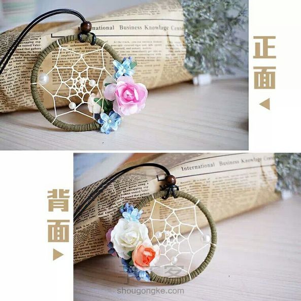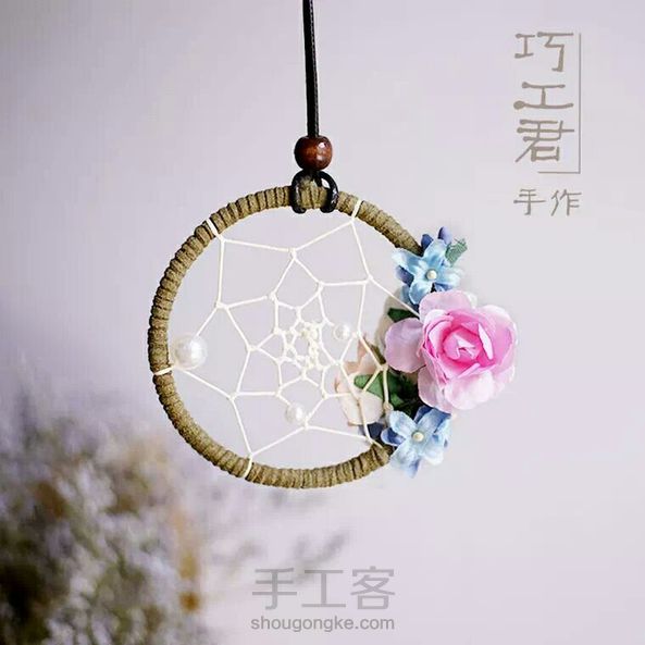 巧工君手作-永生花捕梦网车挂,喜欢这种小清新吗?店内有材料包哦~