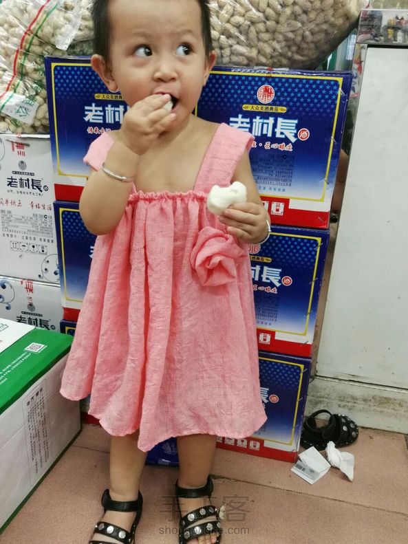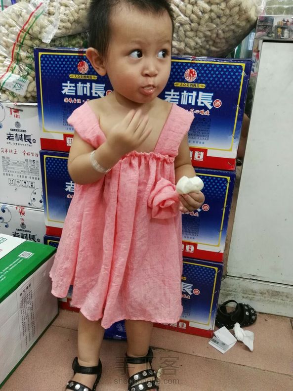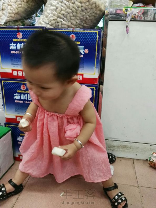 给我女儿新做了一条小裙子,手缝用了一下午才搞定,可爱么😊😊😊 我女儿是个小吃货😓😓😓