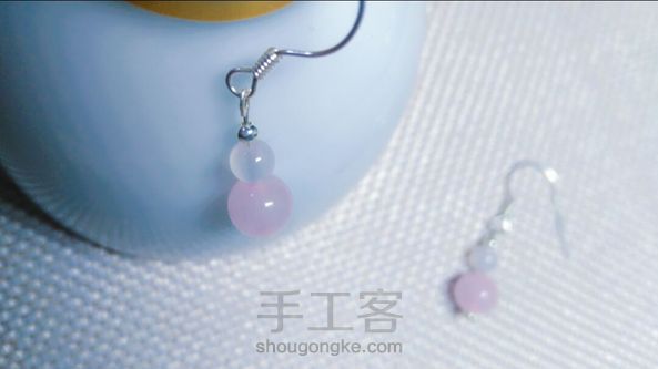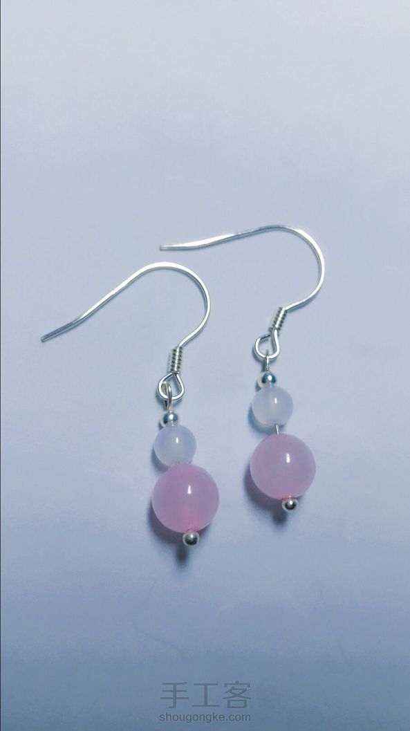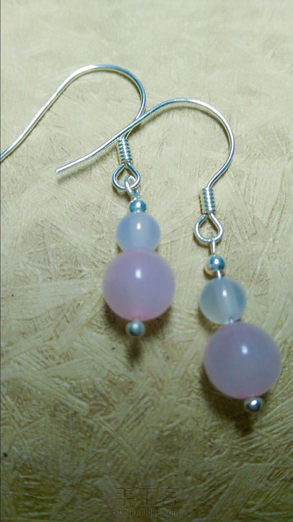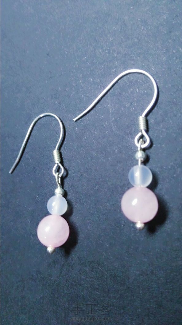 美美哒925纯银粉水晶白玛瑙古风耳饰