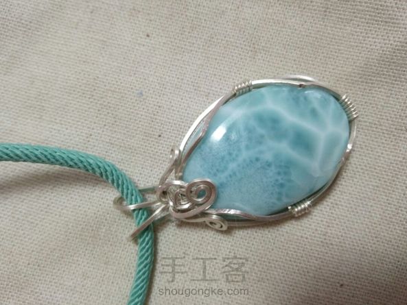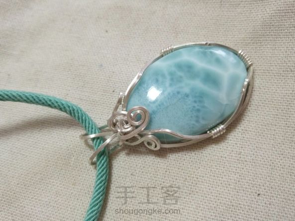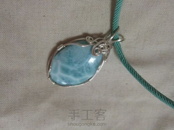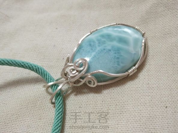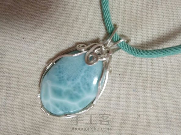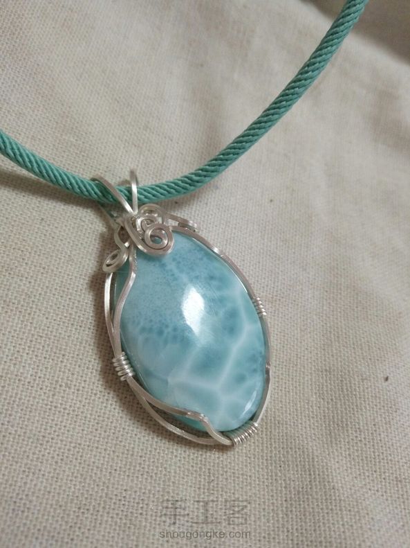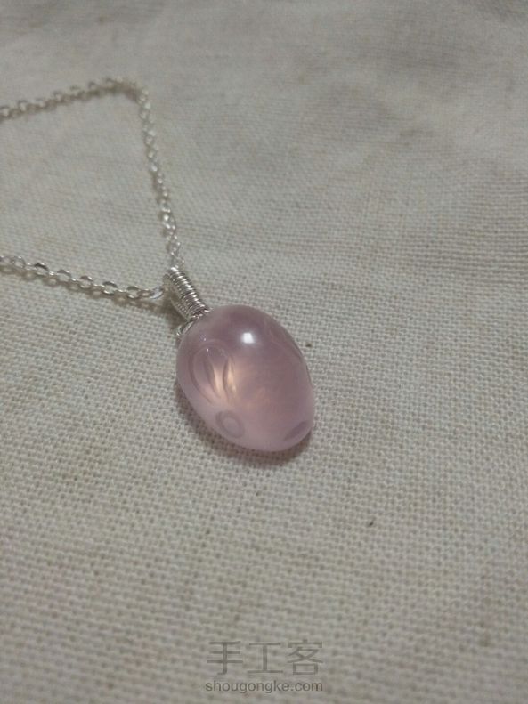 客定简洁款海纹石纯银绕线毛衣链吊坠,补图是昨天绕了个扣头的粉晶迷你小兔子吊坠。客人都比较保守,要求简单的款式。