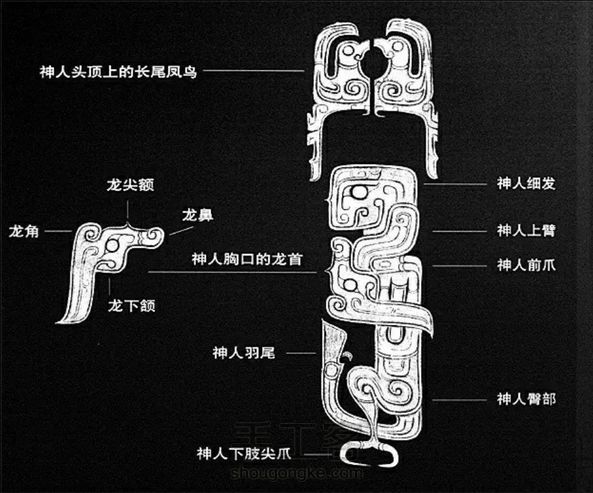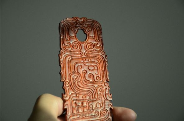 小叶紫檀/神人龙凤纹形器 西周神人龙凤合体佩,触摸着这些古董珍玩仿佛能感受到那段尘封的历史。周边出扉牙,上部凤鸟打眼,双面纹饰相同。神人有冠细发如丝面部清晰,身躯藏伏神龙整器工艺细腻老熟、构图布局巧妙合理、双钩工艺娴熟精湛,人、龙、凤象生同体,神话动物,天人合一,收藏佳品。