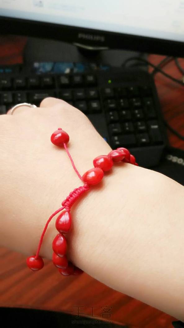 新学的编绳,相思红豆