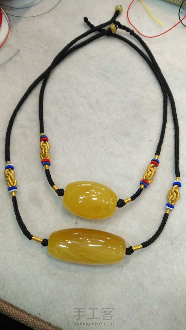 情侣蜜蜡桶珠颈链