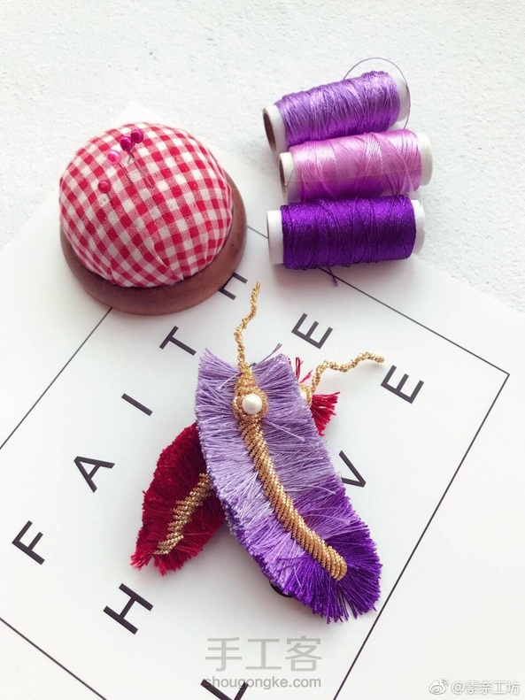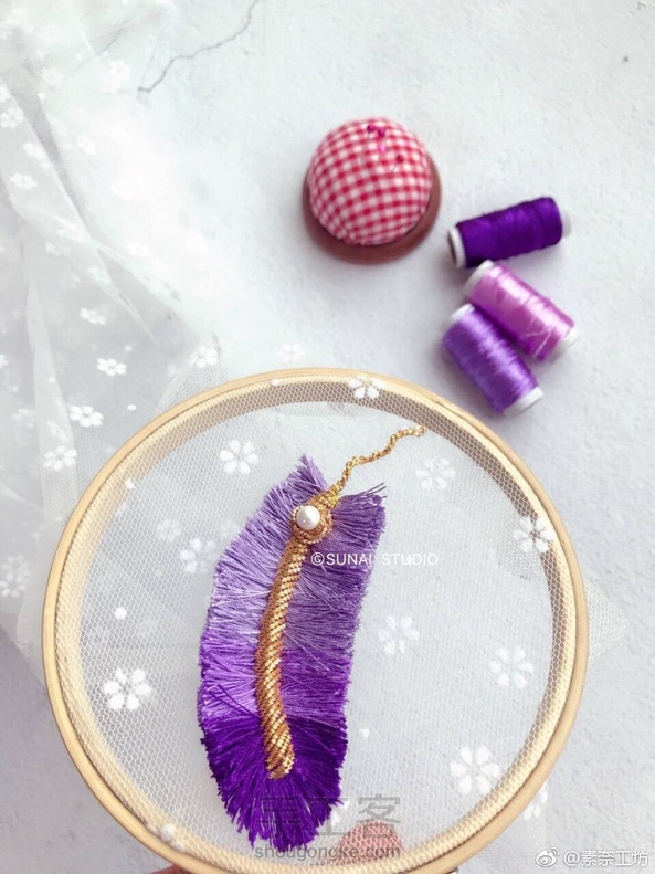 原创手工帽饰品/法式胸针[调皮] 🍃又像叶子又像羽毛 🎀紫色渐变~