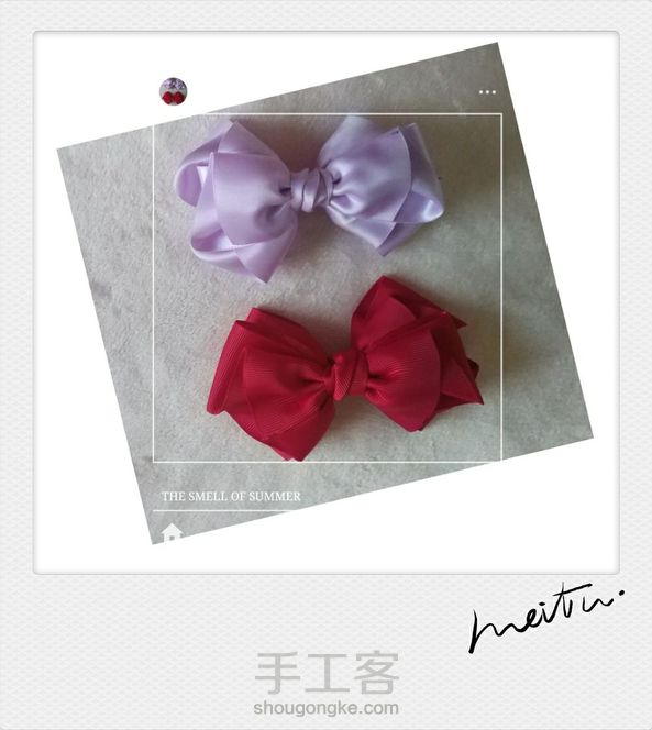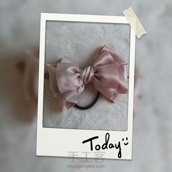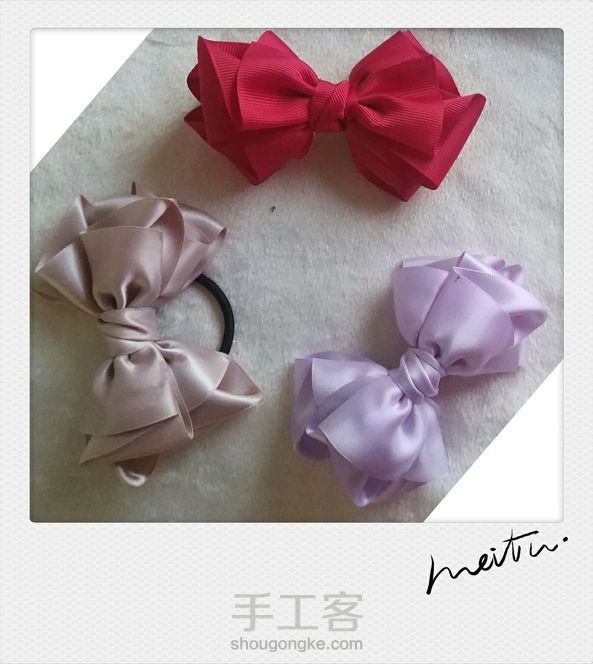 好喜欢这款蝴蝶结啊,一口气做了三个,两个夹子,一个发圈,过瘾♥