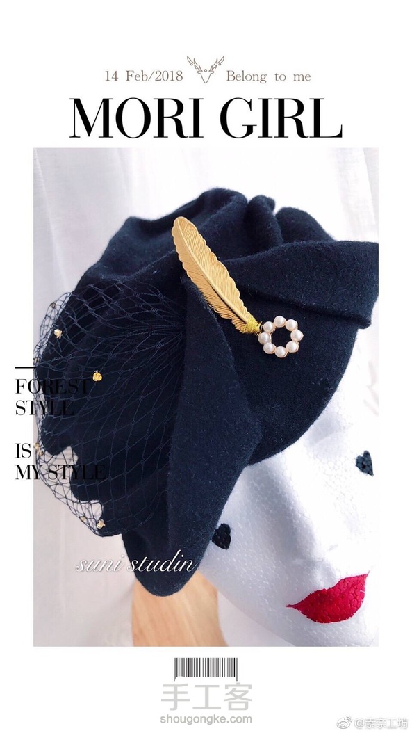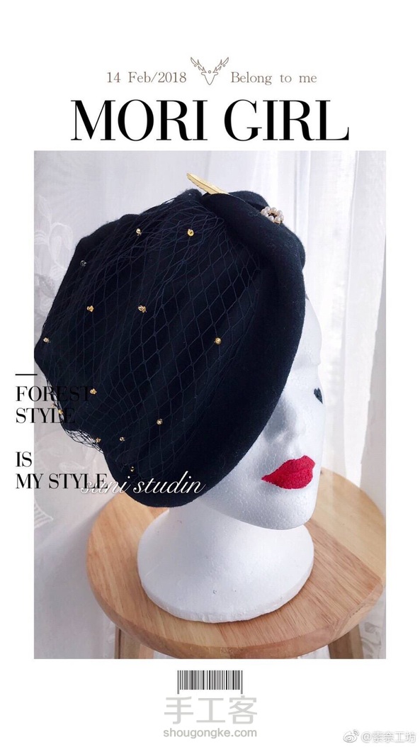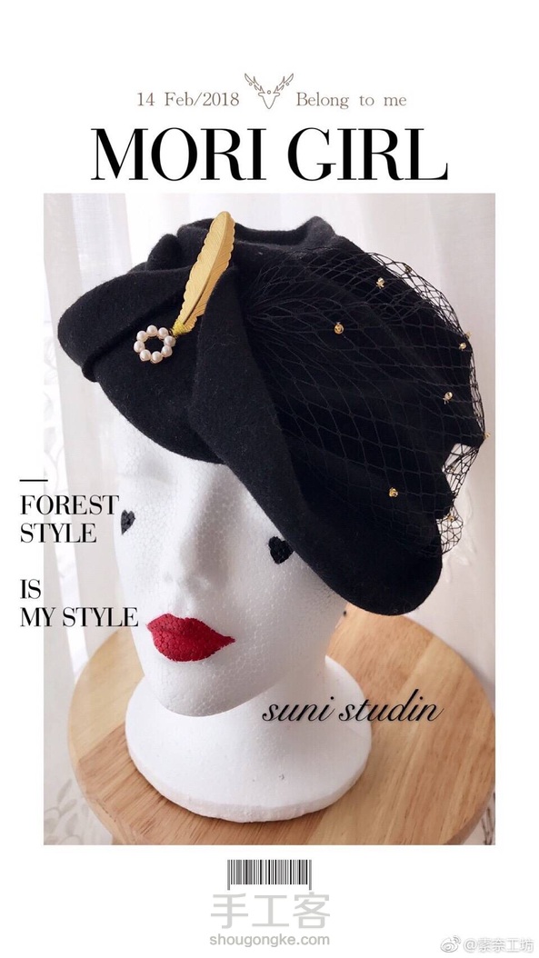 Retro hat新款——羊毛呢网纱帽子帽子,金色亮片/珠子点缀。极具复古情怀和浪漫情调的一款……黑色怎么搭配都好看!🎉🎉