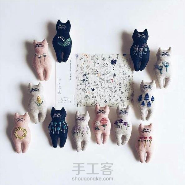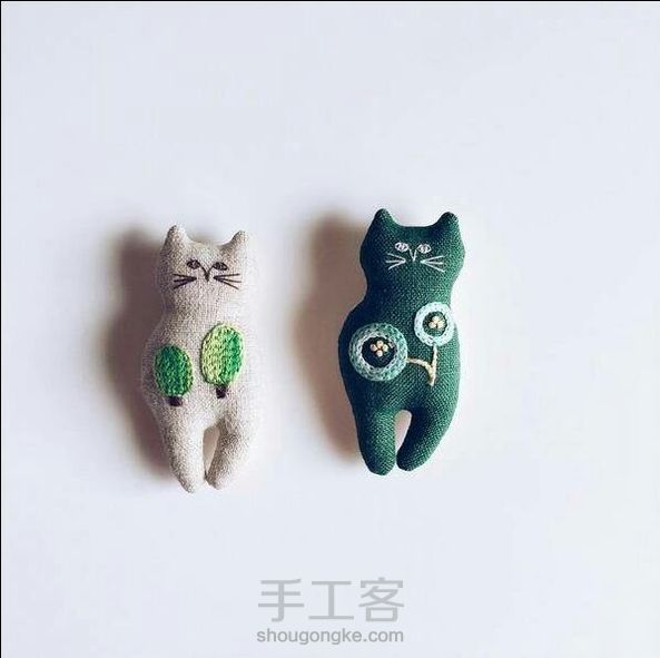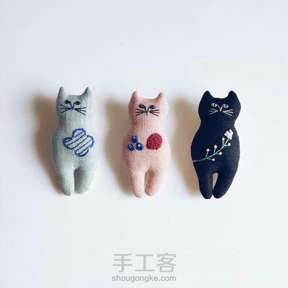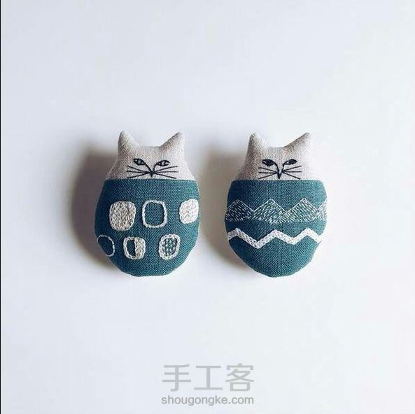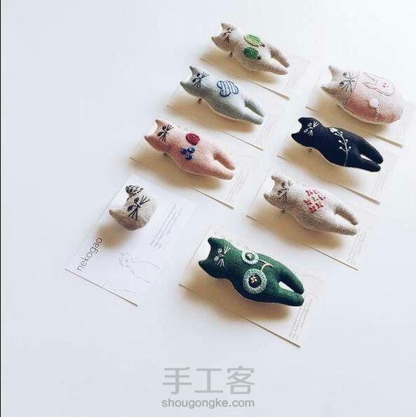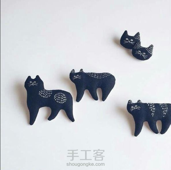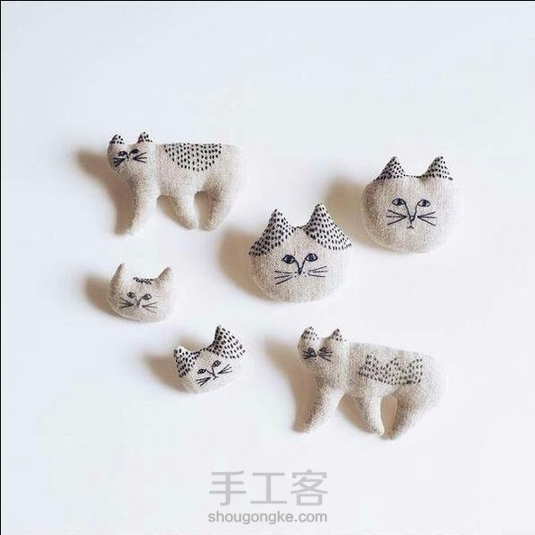 布艺手作猫咪,可以拿来当胸针!