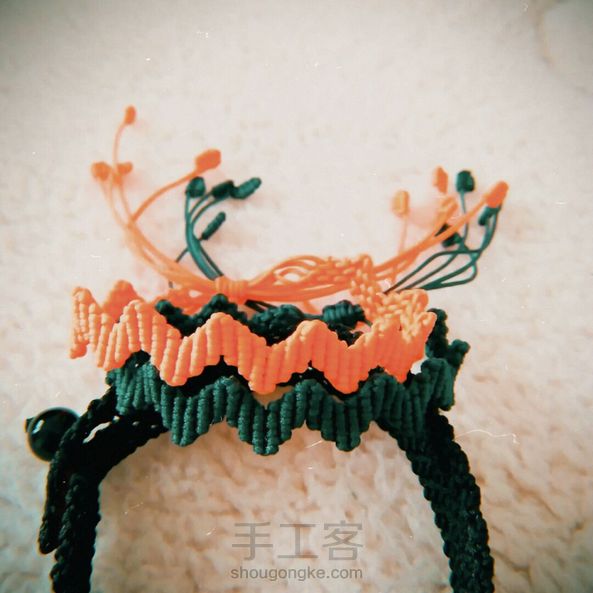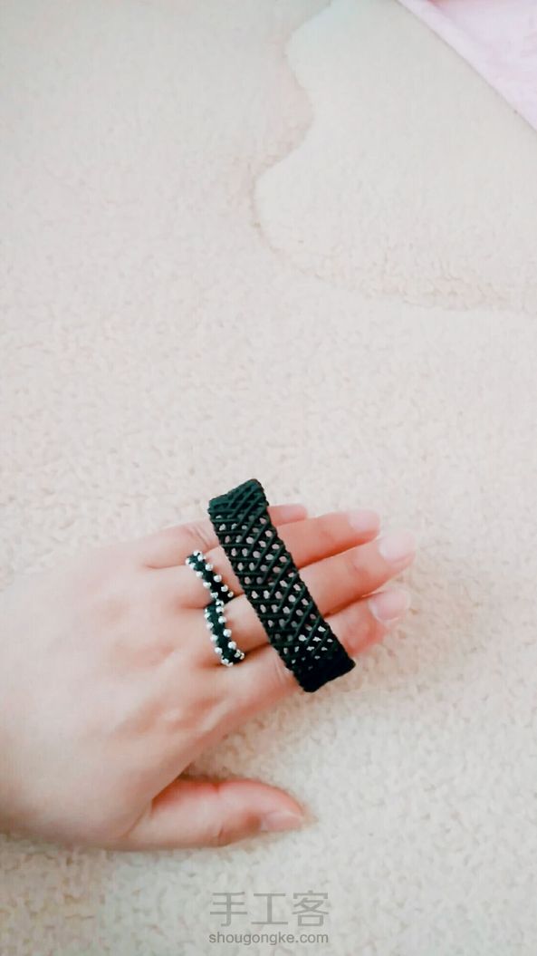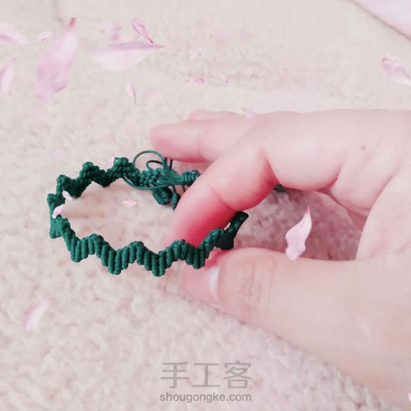 《很漂亮,感谢老师分享的教程,刚开始线选错了用的扁蜡线,导致花瓣上面有很多小孔,之后补救了一下串了一些珠子,成品很喜欢。》