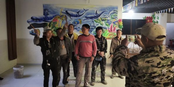 春蕾巜独一处音乐火锅店》墙绘艺术,绘画过程中~很多老乡前来观赏和点赞拍照留念!和这些可爱的老乡拍照很有留念意义,很捧场!很给力!