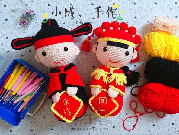 chEng小成 回复 若卿,竹夂/:男娃31CM,女娃29CM,五股奶棉,3.0钩针