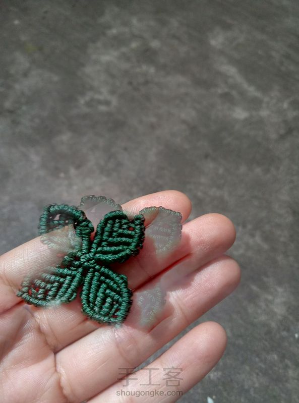 《很漂亮,感谢老师分享的教程,刚开始线选错了用的扁蜡线,导致花瓣上面有很多小孔,之后补救了一下串了一些珠子,成品很喜欢。》