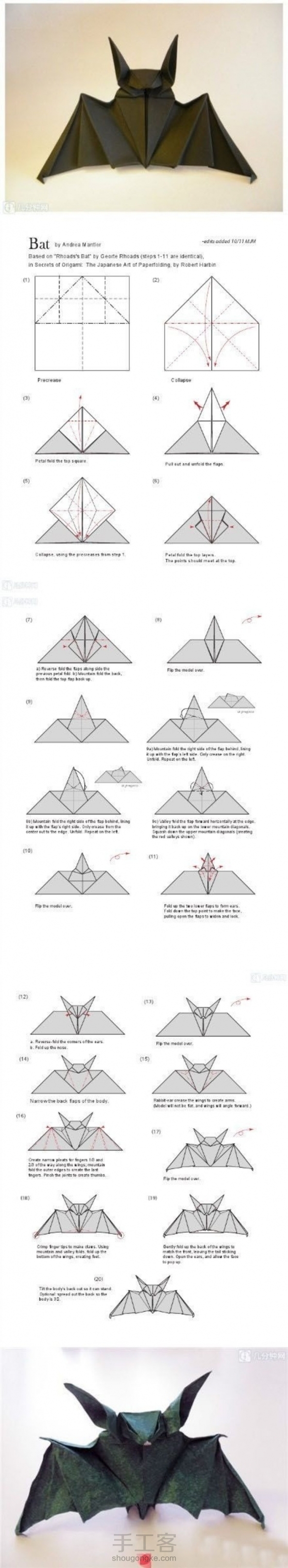分享折纸蝙蝠