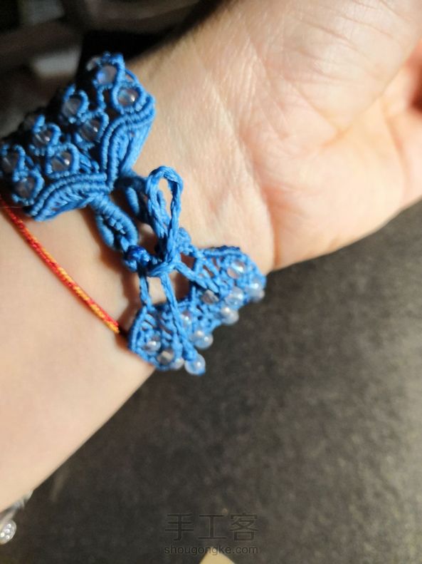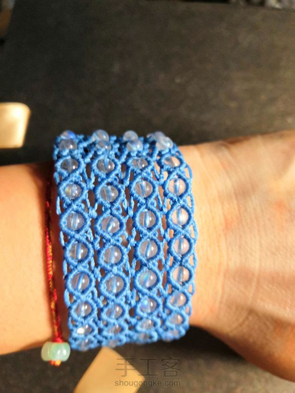 线色把珠光给比下去了😥蓝月光一点都显不出来先戴两天下次再换个线