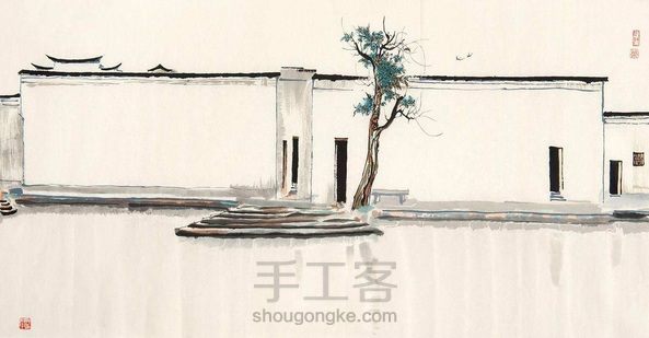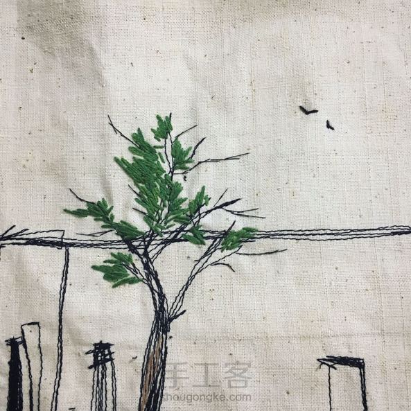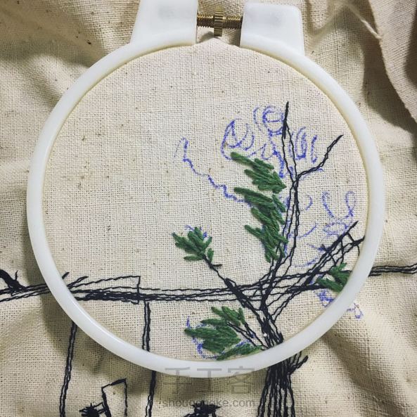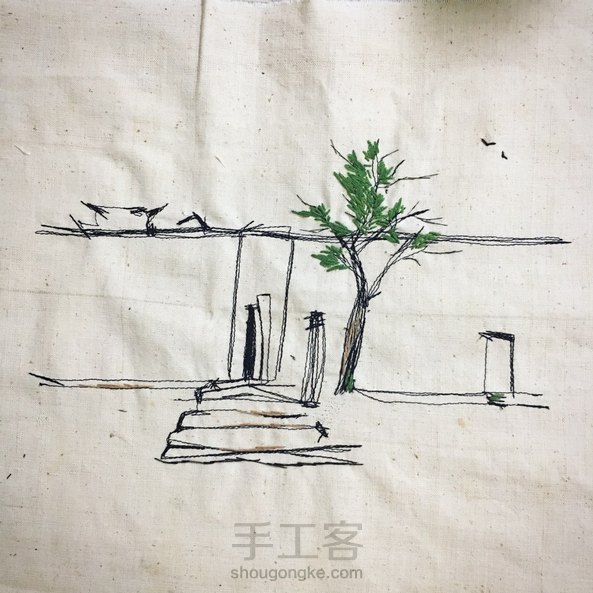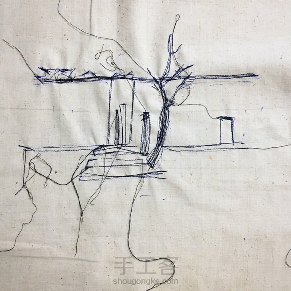尝试了下缝纫机和手绣的结合,踩了幅吴冠中的《江南水乡》