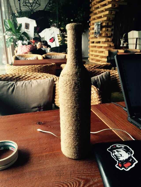 聂磊:普通的麻绳,双面胶打底,注意边缠边把麻绳拧紧,这样看着整齐好看。