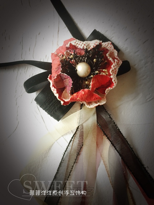 《很漂亮,感谢老师分享的教程,刚开始线选错了用的扁蜡线,导致花瓣上面有很多小孔,之后补救了一下串了一些珠子,成品很喜欢。》