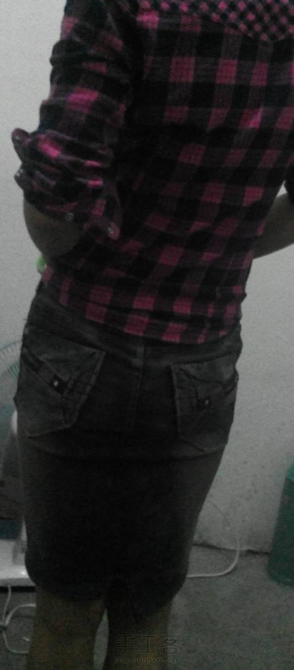 这是一条穿了两年的裤子,下边颜色不好看了,刚好天热,就改成了牛仔裙!本想发教程,整着整着就做好了~:-D