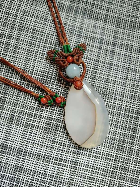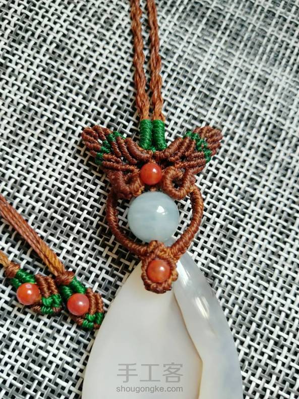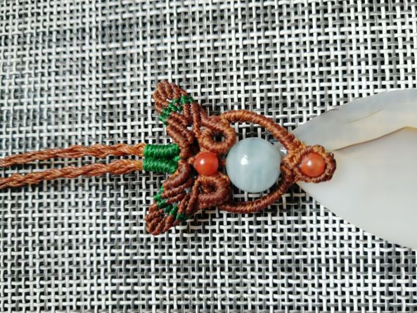 暗潮老师的课程,就是编的有点不太匀,海蓝宝不到10mm, 应该少编几个雀头结。