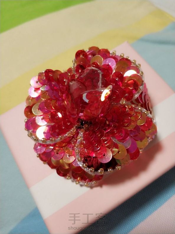 法绣山茶花。 这个粉变色太美了!