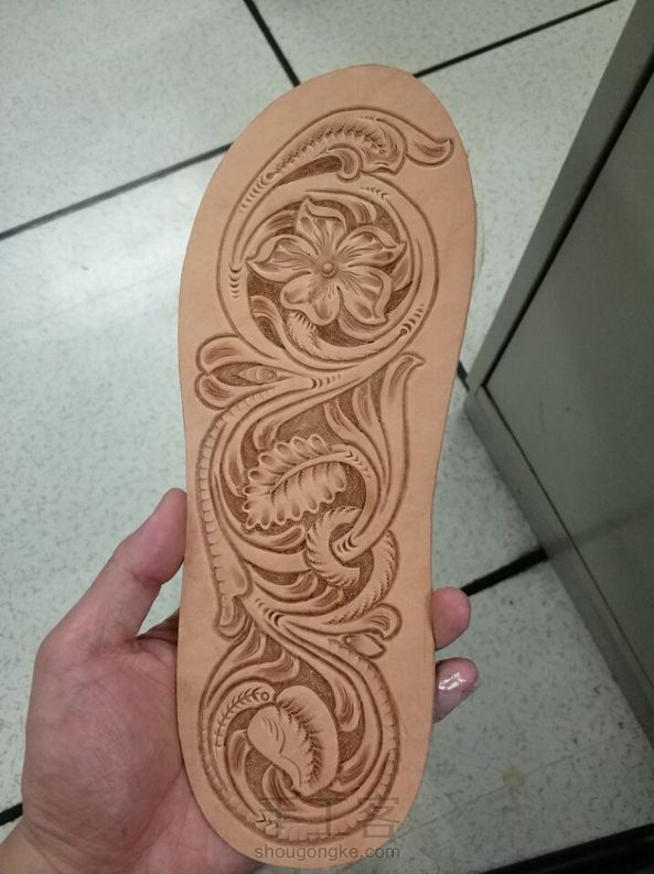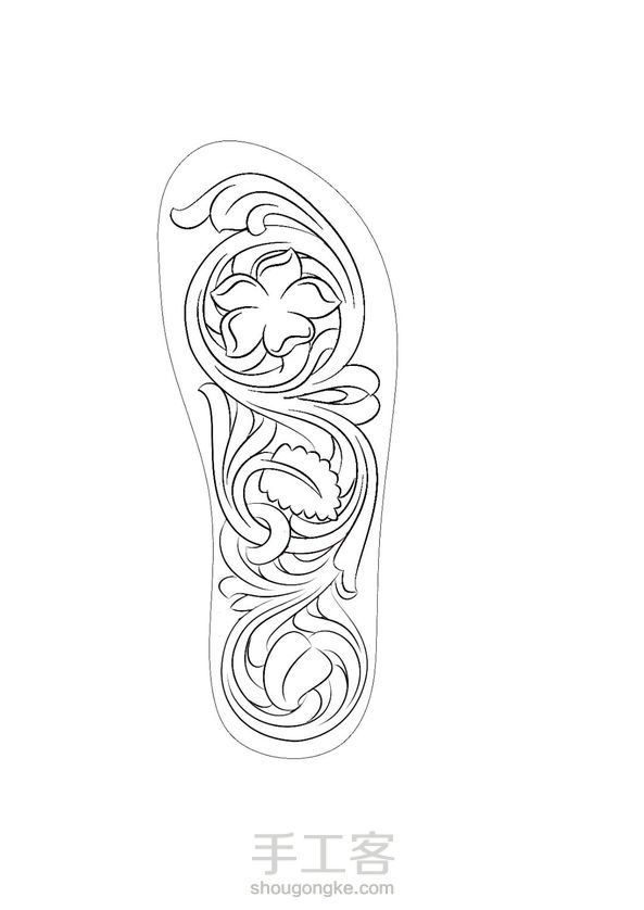 谢里丹风格皮雕唐草人字拖图纸以及成品照
