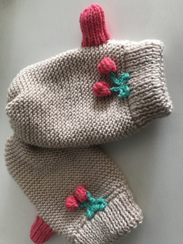 补发两张小手套,跟之前搓板针的帽子围巾一套的,超喜欢萌萌的小樱桃,闺蜜家女儿还挺喜欢的,戴上就不摘下来了😄
