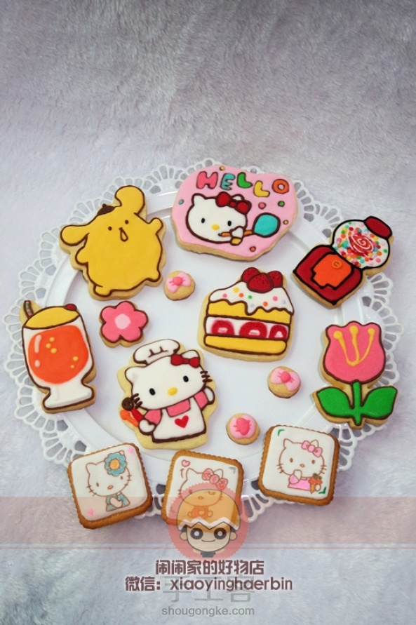 kitty猫手绘糖霜饼干,是我客人里面点名需求最多的款式,喜欢kitty可以是20几岁青年,还可以是中小学生,甚至很多还是妈妈买给2岁宝宝吃的,不管怎样的故事,都是一个深深的祝福,每画完一份饼干礼物,就多知道了一个甜蜜幸福的故事。喜欢这样的手工过程,喜欢把好吃好看的甜品分享给大家