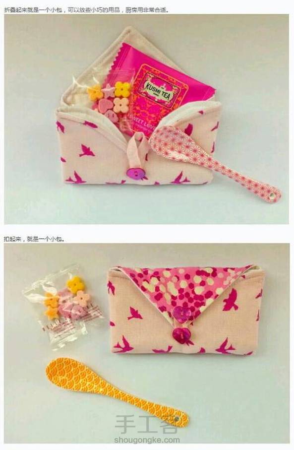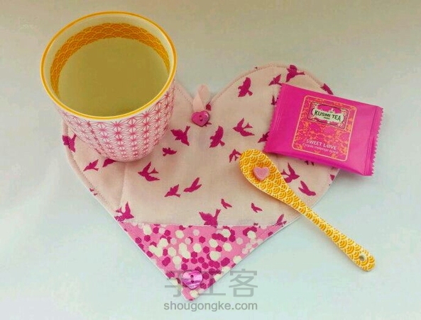 转自网络~多功能心形折包,打开是一个心形杯垫,折起来就是一个小包,真是别出心裁