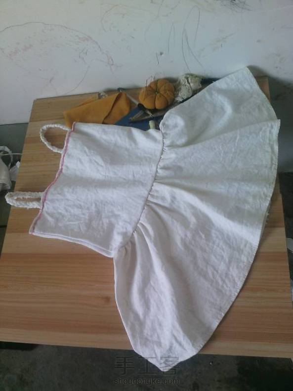 忙了三个小时的成果,一件没结婚时的裙子的裙摆,最后实在是太累了就编了个肩带,没缝纫机真累啊,