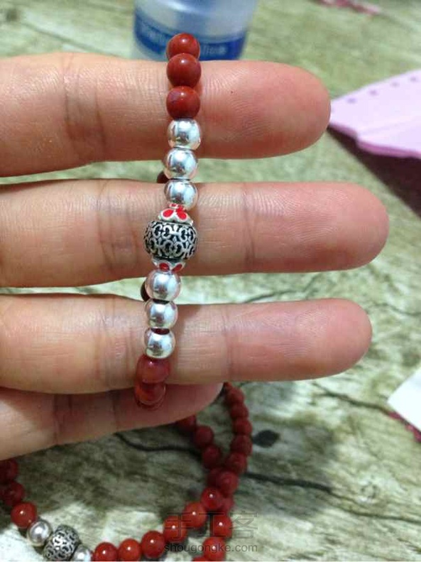diy的南红银串,自己三个,妮一个,哈哈。